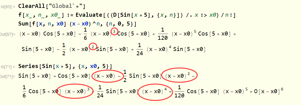 我用Sum求和来获取一个函数的泰勒展开,但是输出的结果不是按照(x-x0)的幂从低到高排列,不知怎么处理才好。